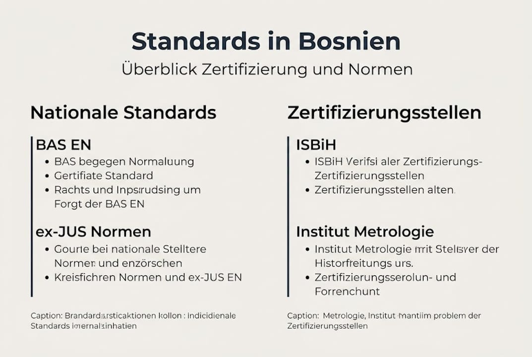 Für Unternehmen, die in Bosnien und Herzegowina tätig sind, ist das Verständnis der geltenden Standards und Normen entscheidend. BAS-Standards orientieren sich an EU-Normen, wobei bereits über 1.207 EU-Standards übernommen wurden. Für Bereiche, in denen noch keine BAS-Standards existieren, gelten weiterhin die alten ex-JUS-Normen aus der jugoslawischen Zeit.