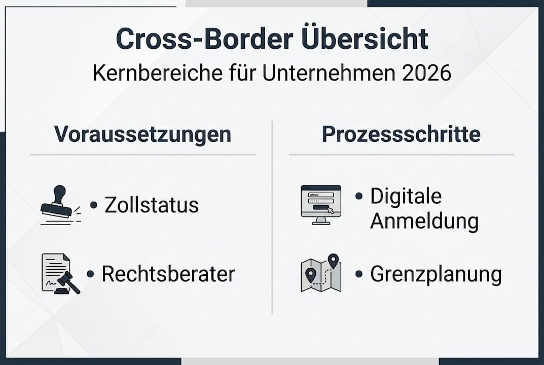 - Digitale Voranmeldung, richtige Planung sowie rechtliche Beratung optimieren Grenzübertritte und Kosten.