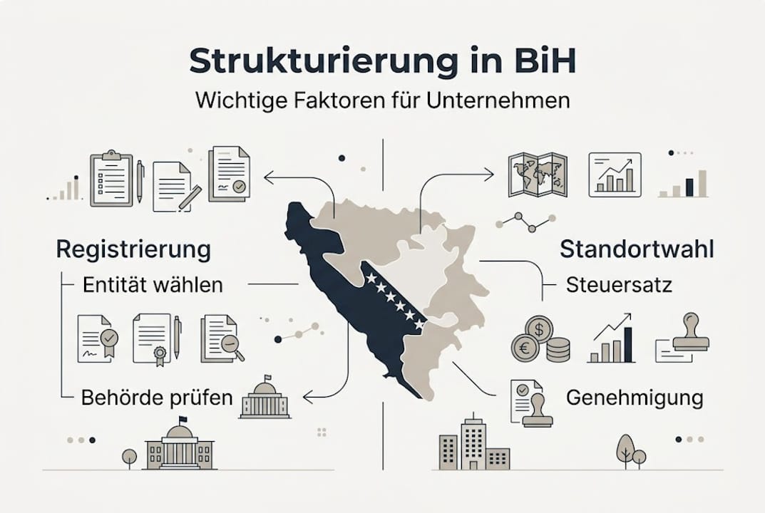 Profi-Tipp: Bei grenzüberschreitenden Unternehmensgruppen empfiehlt es sich, parallele Strukturen in mehreren Entitäten von Anfang an zu planen. Eine Holding in Brčko mit operativen Tochtergesellschaften in FBiH und RS kann steuerliche und operative Vorteile kombinieren, erfordert aber von Beginn an eine koordinierte Planung.