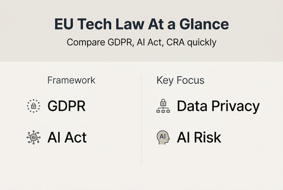 - Core EU technology law frameworks: GDPR, AI Act, and more