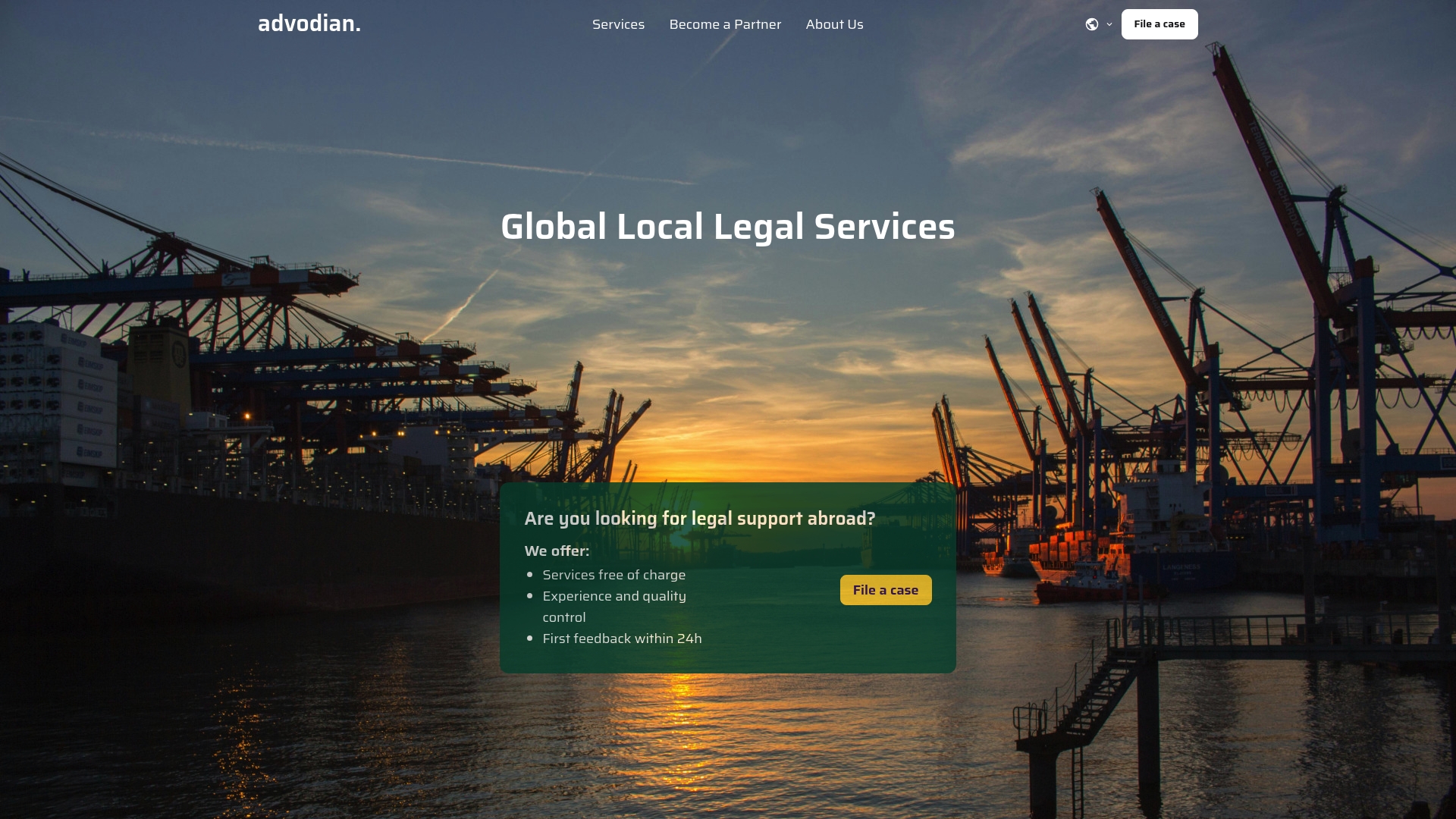 Advodian ist eine kostenlose Vermittlungsplattform für grenzüberschreitende Rechtsfragen. Die Plattform vergleicht Angebote regionaler Kanzleien und liefert innerhalb von 24 Stunden Rückmeldung, womit sie schnelle Entscheidungsgrundlagen für internationale Unternehmen und Investoren liefert.